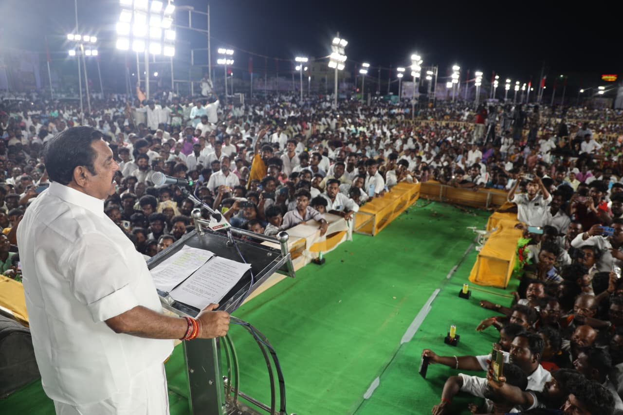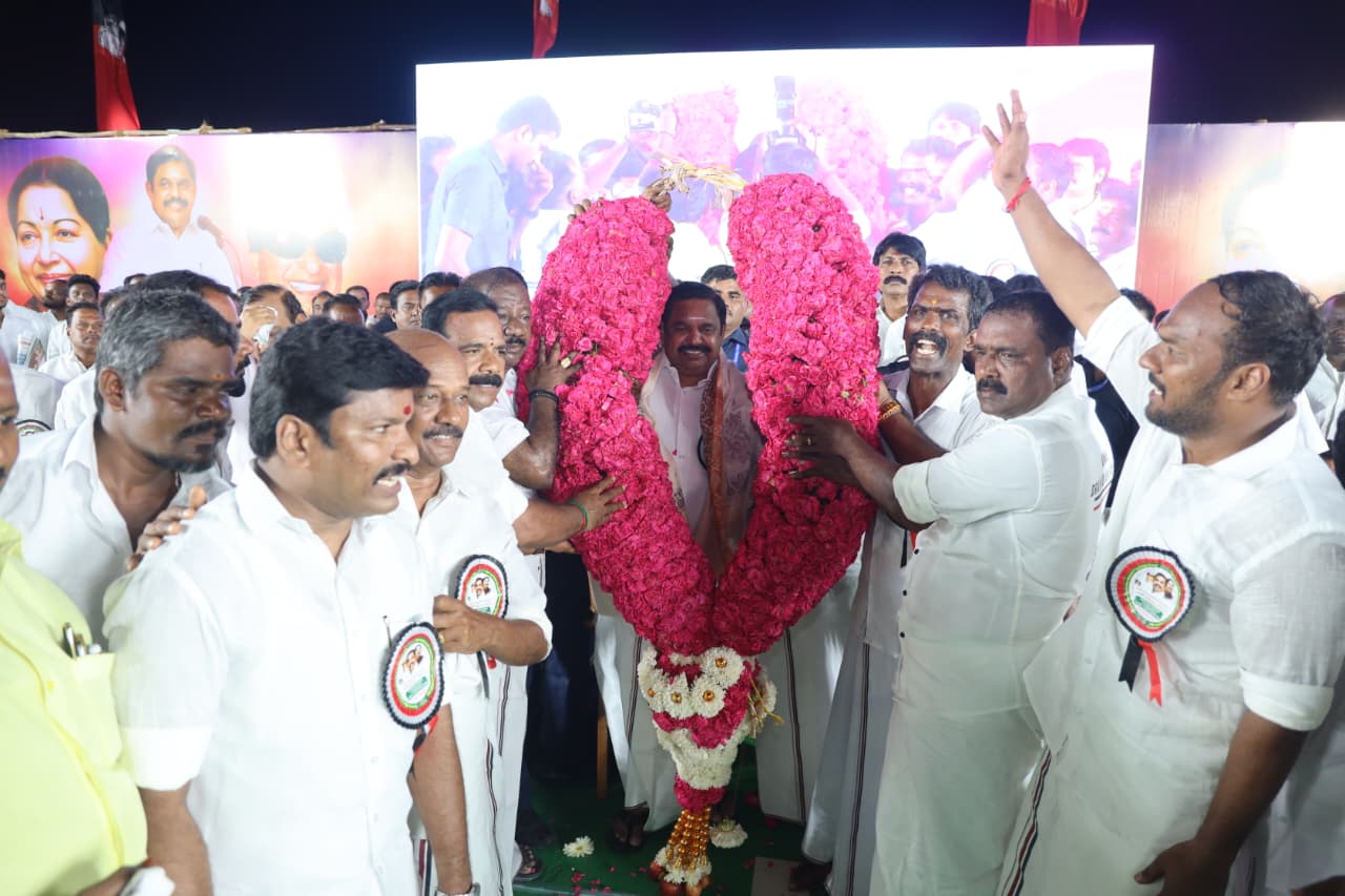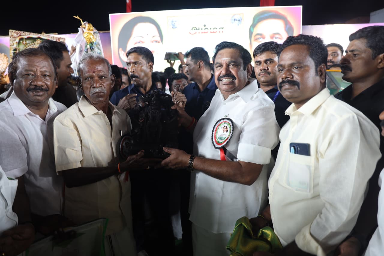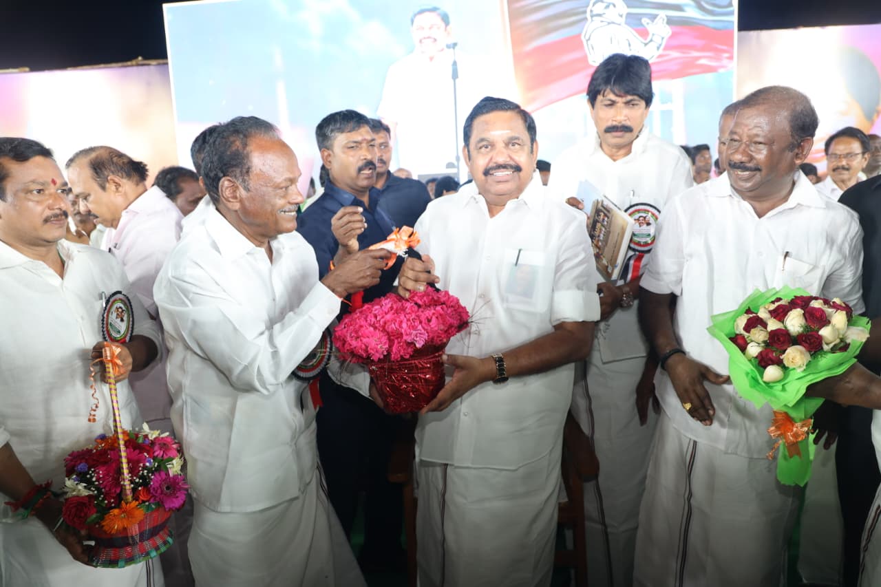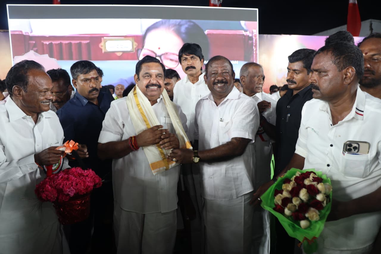 இதய தெய்வம் மாண்புமிகு புரட்சித் தலைவி அம்மா அவர்களின் 77-ஆவது பிறந்த நாள் விழாவை முன்னிட்டு, இன்று (8.9.2025 – திங்கட் கிழமை) கள்ளக்குறிச்சி மாவட்டம், திருக்கோவிலூர், டி. கீரனூர் ரவுண்டானாவில் புதியதாக நிறுவப்பட்டுள்ள 126 அடி உயர கொடிக்கம்பத்தில், கழகப் பொதுச் செயலாளரும், மாண்புமிகு சட்டமன்ற எதிர்க்கட்சித் தலைவரும், தமிழ் நாடு முன்னாள் முதலமைச்சருமான ‘புரட்சித் தமிழர்’ திரு. எடப்பாடி K. பழனிசாமி அவர்கள் கழகக் கொடியினை ஏற்றி வைத்து, சிறப்புரை ஆற்றினார். தொடர்ந்து, 5,371 ஏழை, எளியோருக்கு நலத்திட்ட உதவிகளை வழங்கினார்.