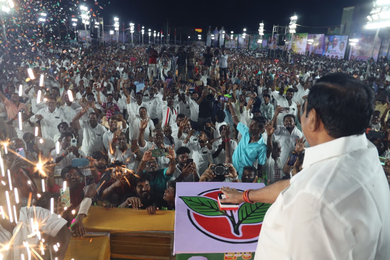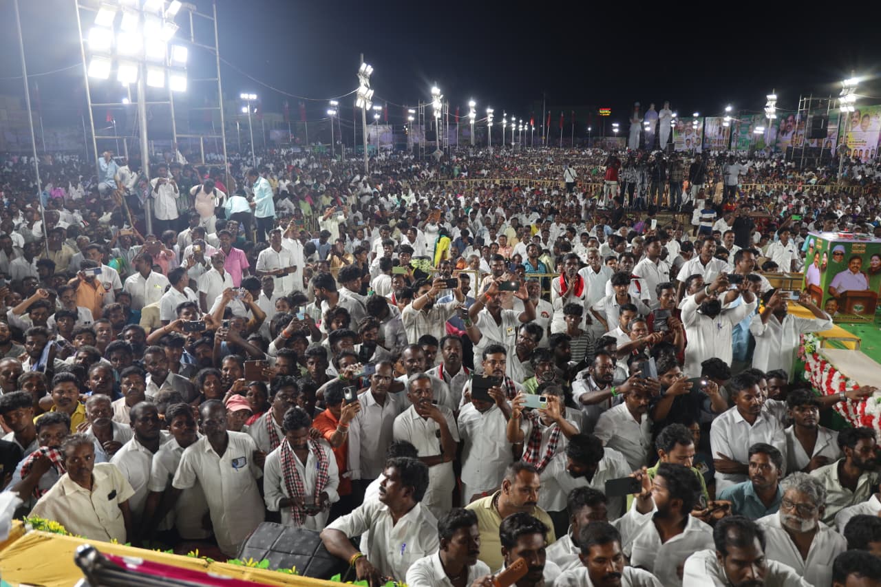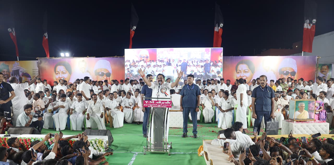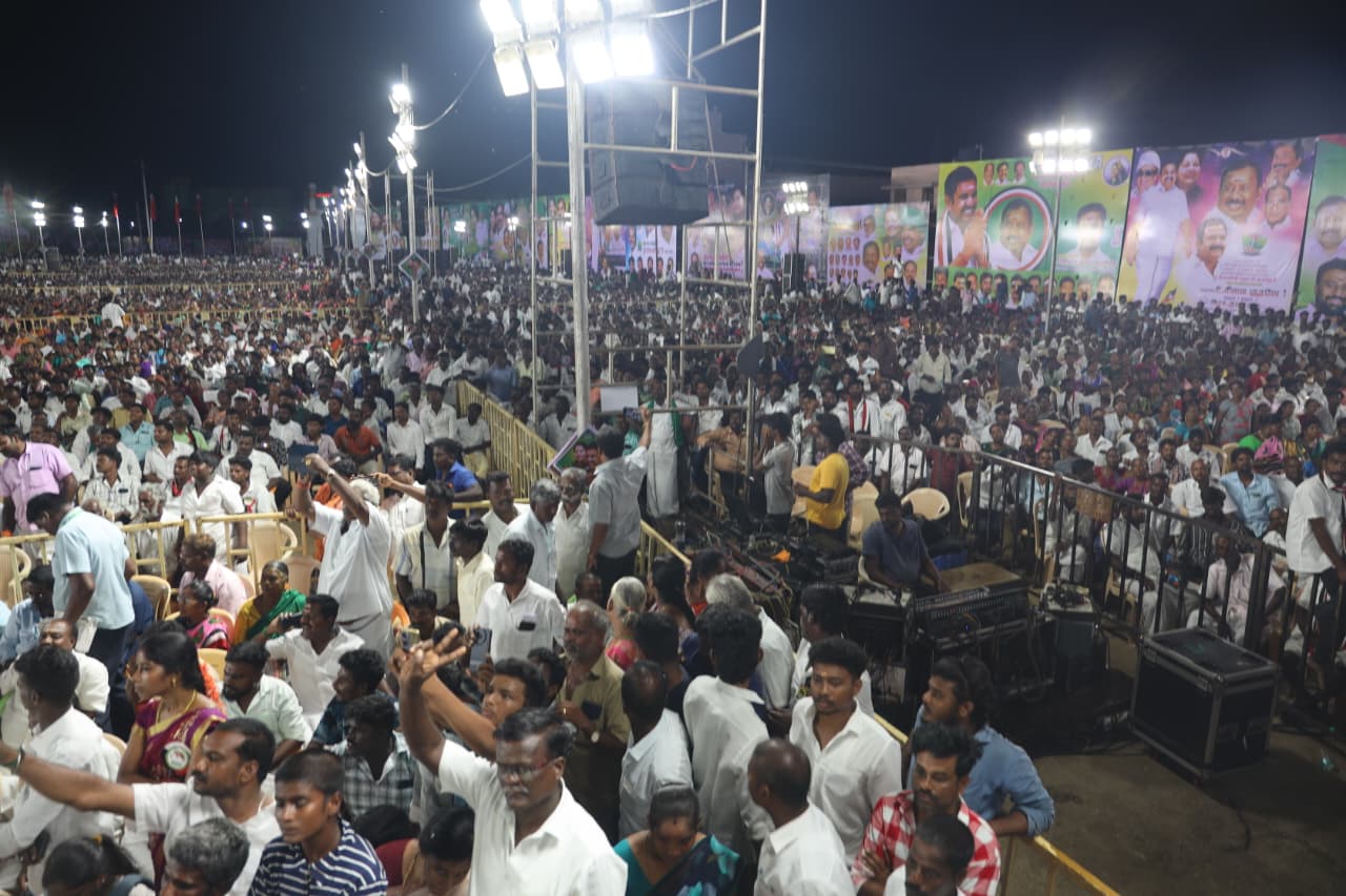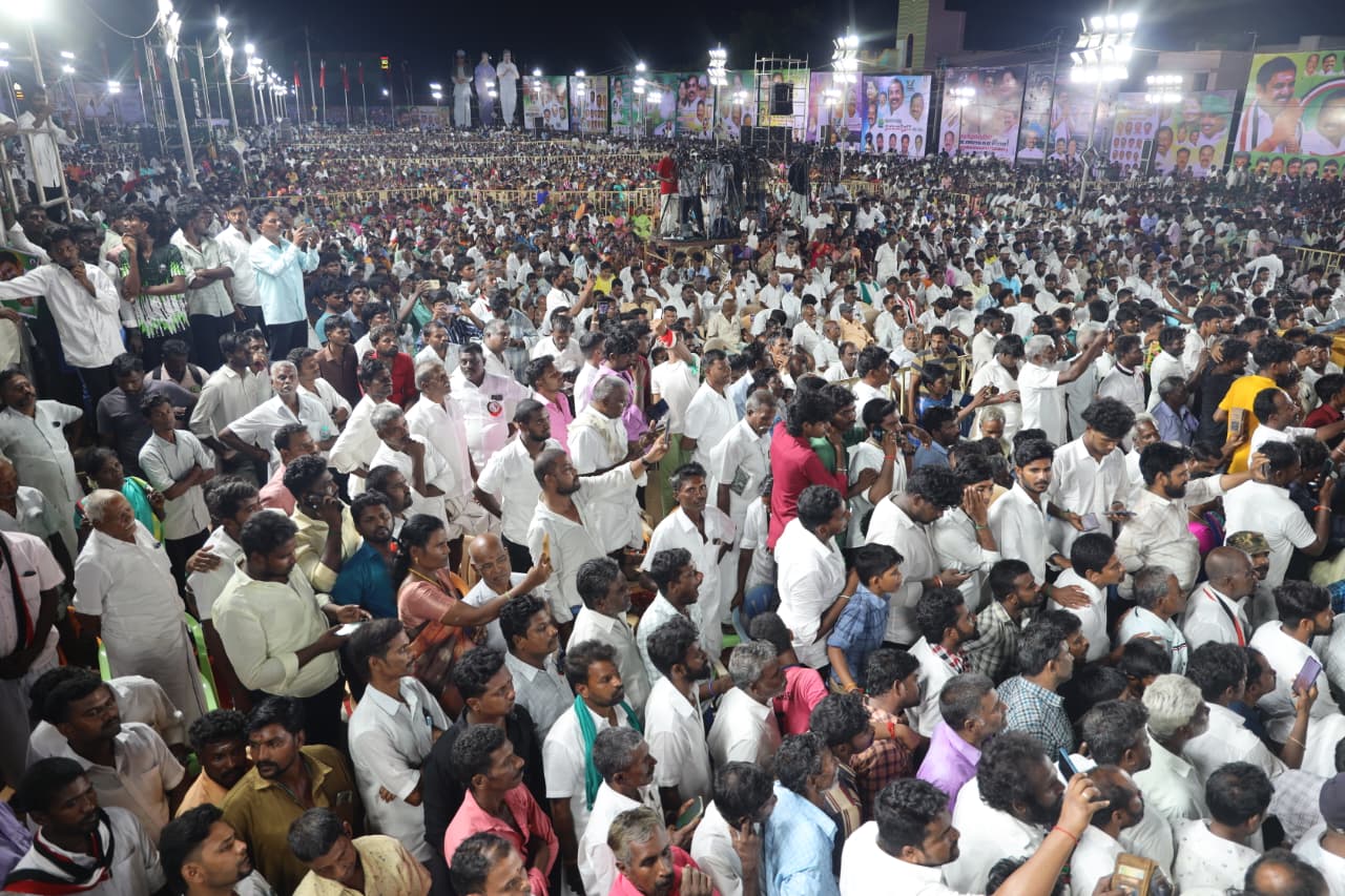 இதய தெய்வம் மாண்புமிகு புரட்சித் தலைவி அம்மா அவர்களின் 77-ஆவது பிறந்த நாள் விழாவை முன்னிட்டு, இன்று (8.9.2025 – திங்கட் கிழமை) கள்ளக்குறிச்சி மாவட்டம், திருக்கோவிலூர், டி. கீரனூர் ரவுண்டானாவில் புதியதாக நிறுவப்பட்டுள்ள 126 அடி உயர கொடிக்கம்பத்தில், கழகப் பொதுச் செயலாளரும், மாண்புமிகு சட்டமன்ற எதிர்க்கட்சித் தலைவரும், தமிழ் நாடு முன்னாள் முதலமைச்சருமான ‘புரட்சித் தமிழர்’ திரு. எடப்பாடி K. பழனிசாமி அவர்கள் கழகக் கொடியினை ஏற்றி வைத்து, சிறப்புரை ஆற்றினார். தொடர்ந்து, 5,371 ஏழை, எளியோருக்கு நலத்திட்ட உதவிகளை வழங்கினார்.